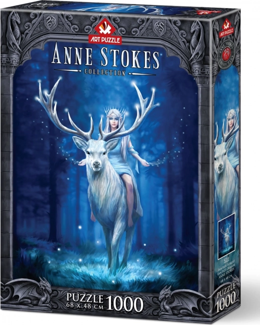 Открийте магията на фентъзи света с пъзела ANNE STOKES: Вълшебна гора от марката ART Puzzle. Комплектът с 1000 части предлага качествена изработка, прецизни изрязвания и краен образ с размери около 48 × 68 cm. Производителят допълнително предоставя услуга за изпращане на липсващо парче, за да се наслаждавате на подреждането без притеснения.
