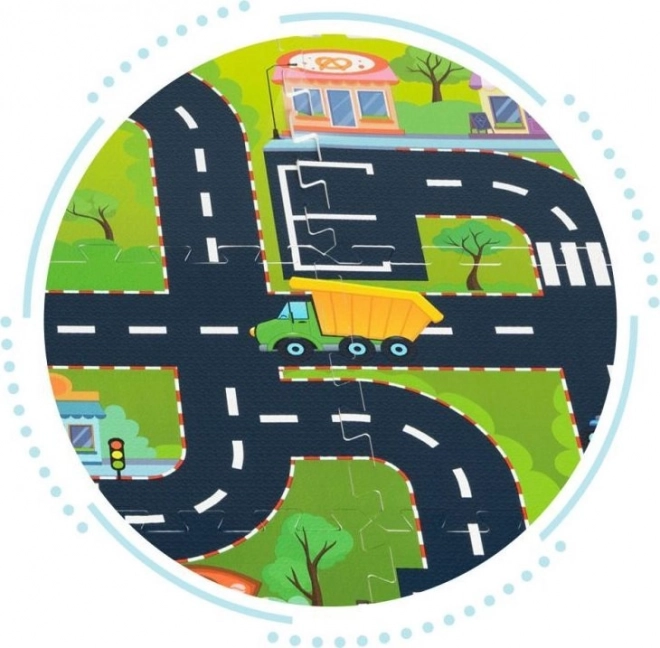 Открийте идеалната подложка за бебета и деца в предучилищна възраст, която подпомага фантазията, моториката и безопасността. Частите с мотив на улици, сгради и паркове приканват към креативна игра с колички и фигурки, докато меката EVA пяна предпазва от студ и омекотява ударите. Благодарение на противохлъзгащата структура повърхността остава стабилна при пълзене, първи стъпки и почивка.