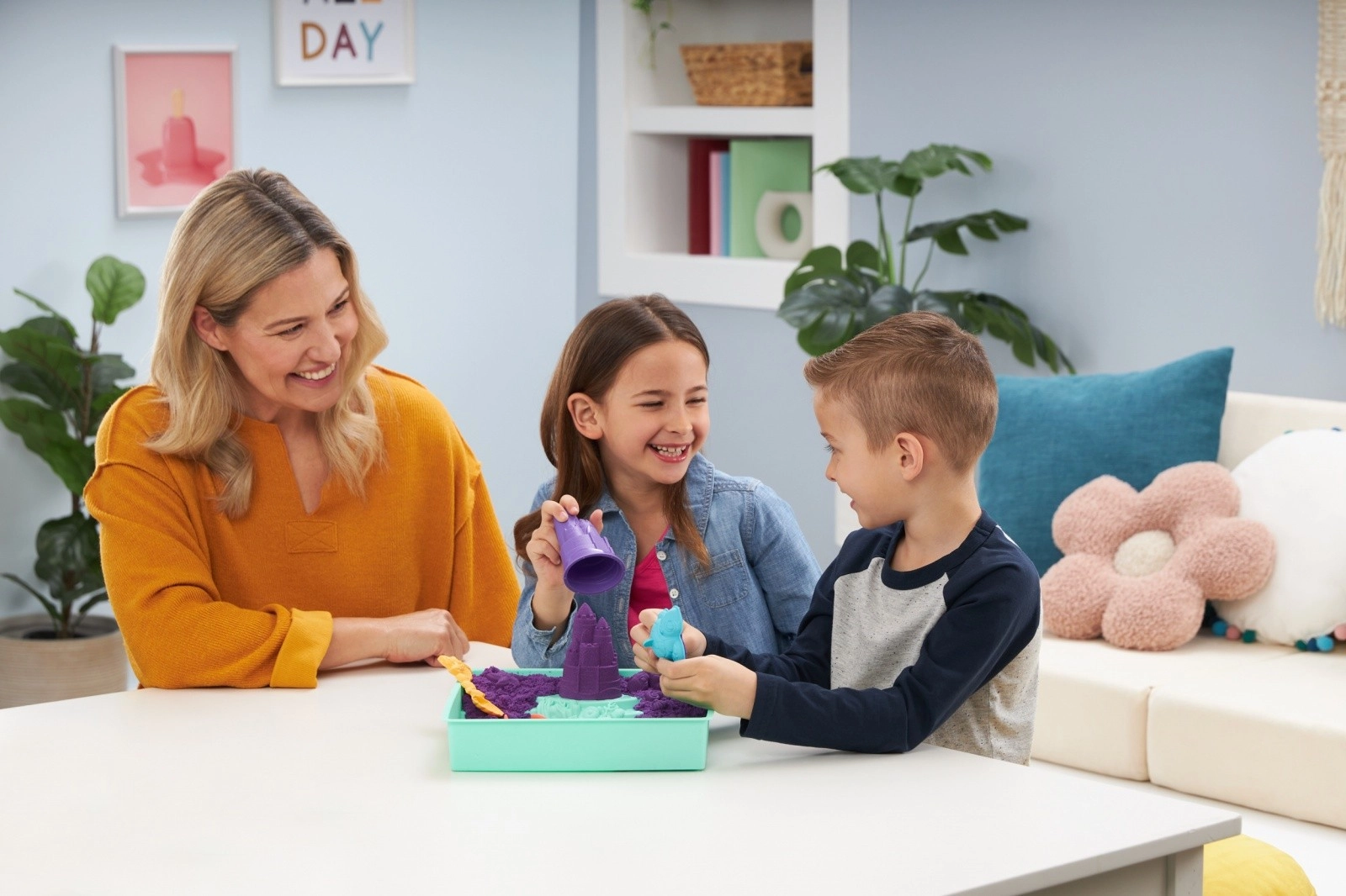 Оригиналният KINETIC SAND приятно се сипе между пръстите, запазва форма и никога не изсъхва – идеален за безкрайно творене без бъркотия.