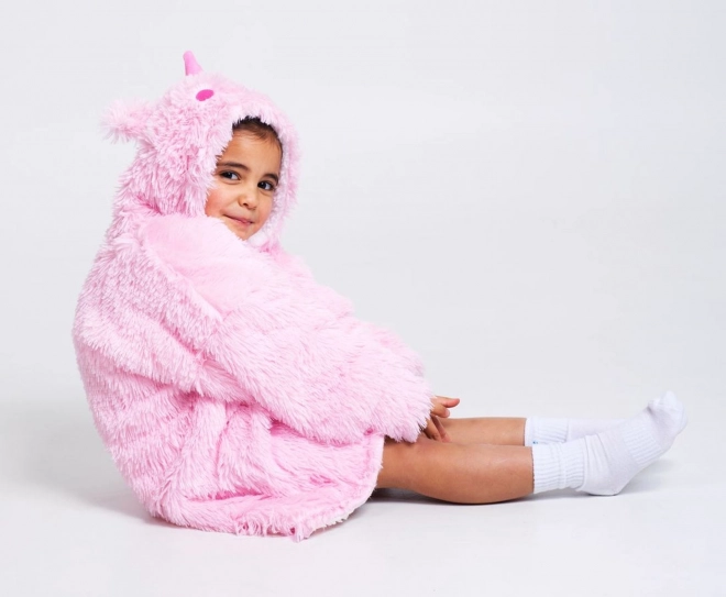 Голямата качулка с животински мотив – еднорог и кенгуру джобът надеждно стоплят главата и ръцете. Одеялото е перфектно за почивка пред телевизора, за пижамени дни, пътуване, къмпинг и по-хладни вечери в градината.