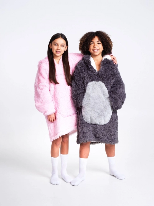 Сладко и практично телевизионно худи-одеяло Cozy Noxxiez за деца на възраст 7–12 години, което комбинира удобството на худи и топлината на одеяло. Външната страна от супер мек фланел, а вътрешността от пухкав шерпа флийс държат децата на топло у дома и навън. Има голяма качулка с мотив еднорог и огромен преден джоб за стопляне на ръцете – идеално за дивана, игра и за вътрешна и външна употреба.