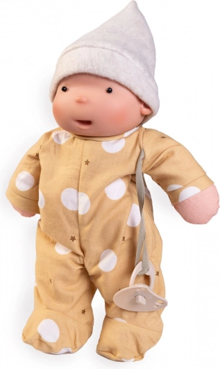 Тази ръчно изработена кукла ARIEL е създадена за нежно гушкане и първи ролеви игри. Съчетава органични материали и качествена изработка: тяло и крайници от органичен памук, глава от 100% силикон и пълнеж от меко PET влакно от рециклирани бутилки. Благодарение на магнитната залъгалка изглежда и се усеща реалистично, като същевременно е безопасна за кърмачета и малки деца.