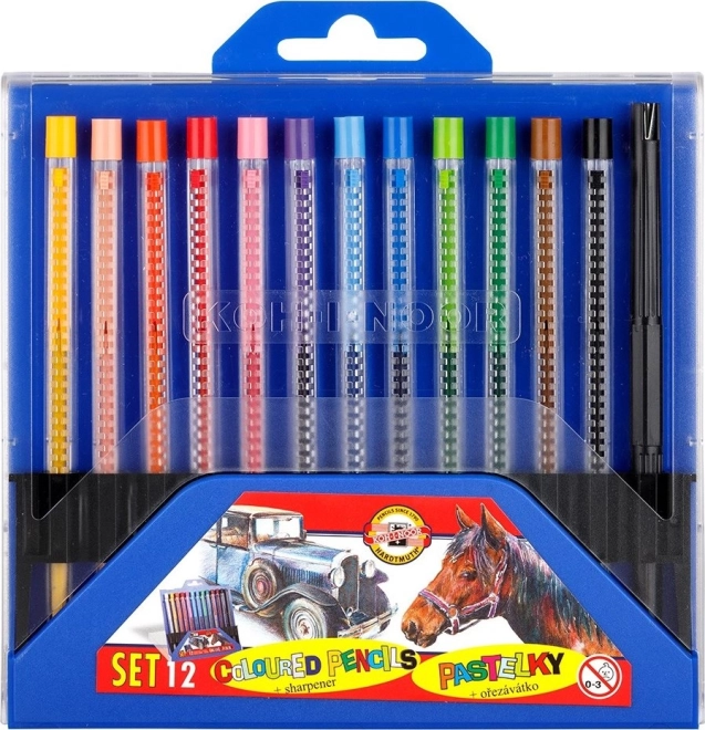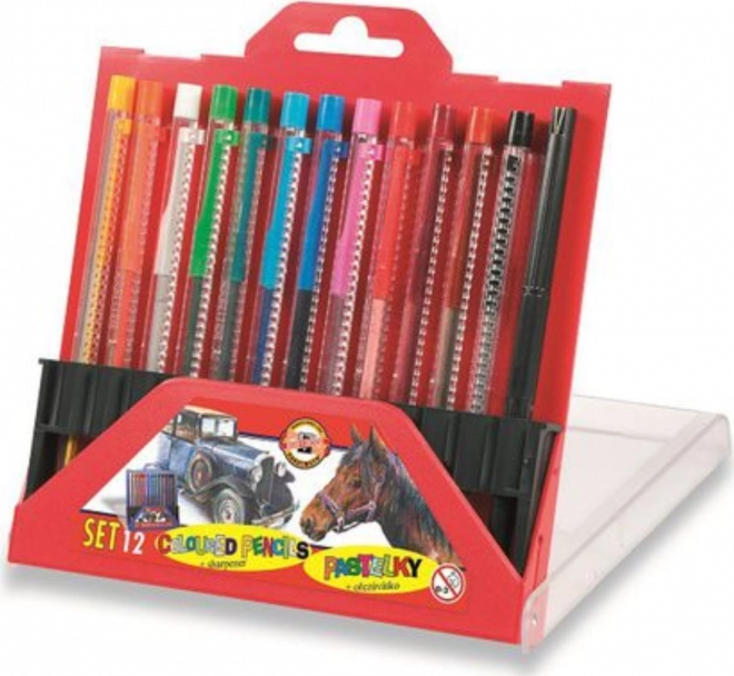 Този комплект механични цветни моливи KOH-I-NOOR осигурява удобно и чисто рисуване без необходимост от подостряне. Благодарение на механичното изтегляне и сменяемите пълнители ще рисувате, оцветявате и подчертавате с максимална прецизност. Прозрачните тела на моливите и острилките позволяват бърза проверка на състоянието на пълнителя.