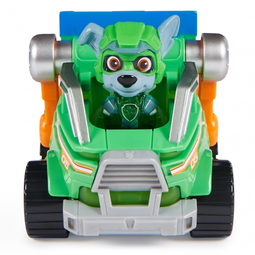 Отправете се на спасителна мисия с Роки от PAW Patrol и неговия зелен камион за рециклиране. Здравото автомобилче със светлина и звук ще зарадва всяко дете, което обича приключенията и устойчивостта. Фигурката е статична, стои стабилно и може да бъде поставена зад волана – при поставяне в кабината се активират звуковите ефекти и светлината.