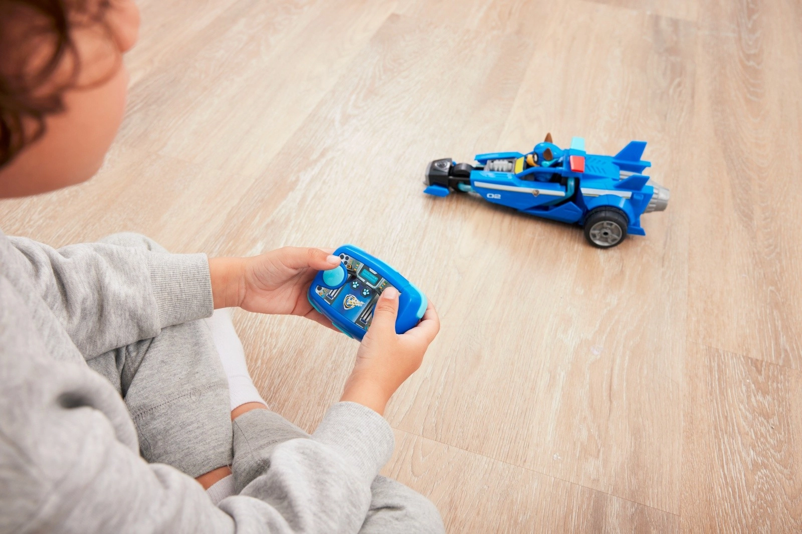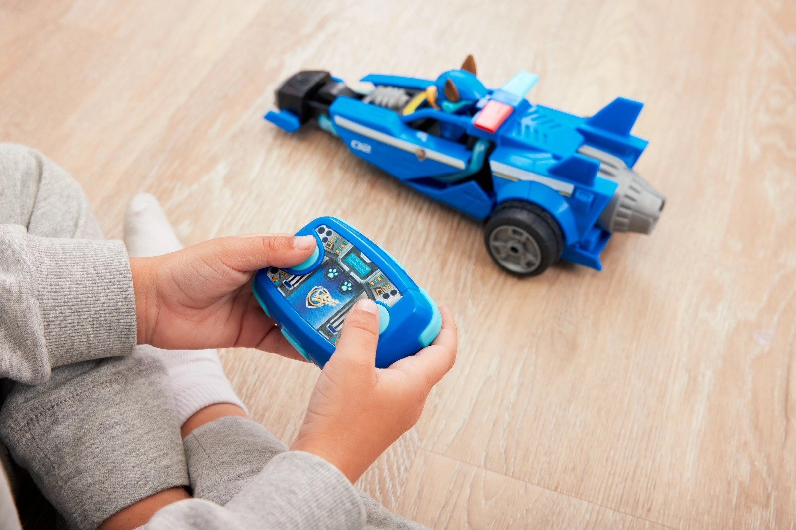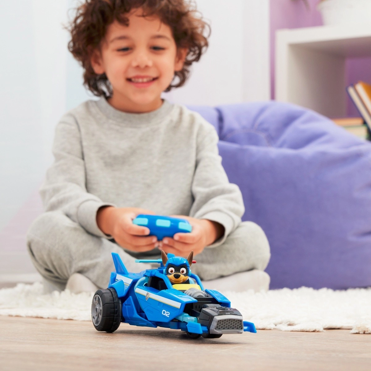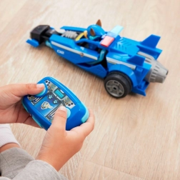 Преживейте действие като във филма Пес патрул с синьото полицейско авто на Чейс с дистанционно управление 2,4 GHz. Децата лесно управляват движение напред и завой на 180° благодарение на двубутонното дистанционно. Колата има големи задни колела, аеродинамични „перки“, номер 02 и детайлно изработена кабина с фигурка на Чейс.