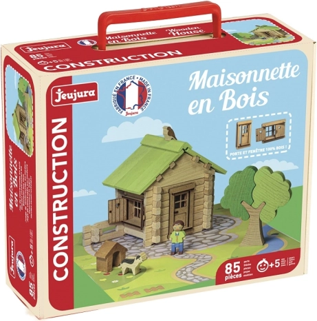 Постройте свой собствен мезонетен дом от масивно дърво! Този традиционен конструктор JEUJURA предлага 85 части, оцветени с бои и лакове на водна основа, и развива креативността, фината моторика и пространственото възприятие. Произведено във Франция, опаковано в практичен куфар с ясни инструкции.