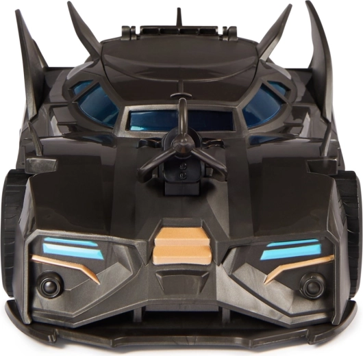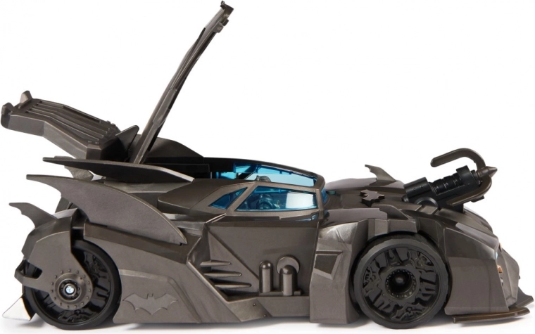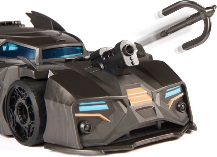 Матово черен корпус, сини тонирани прозорци и емблематичните линии на Батмобила подчертават колекционерската визия и игровите функции.