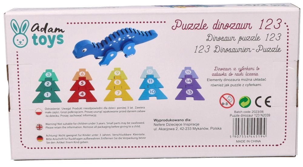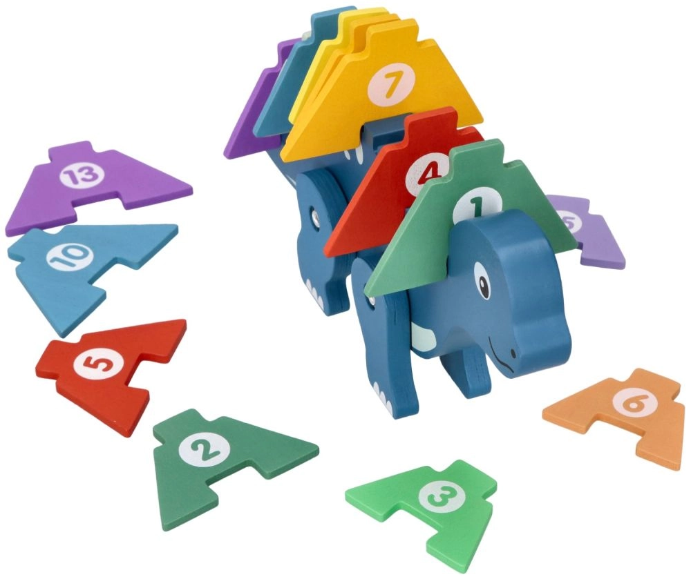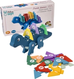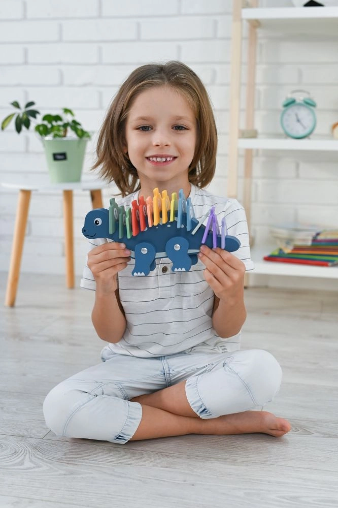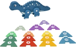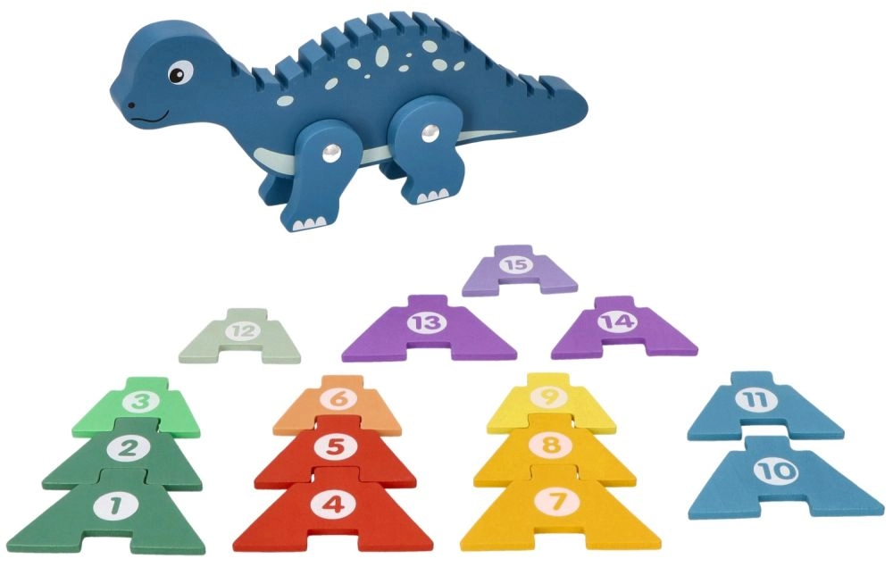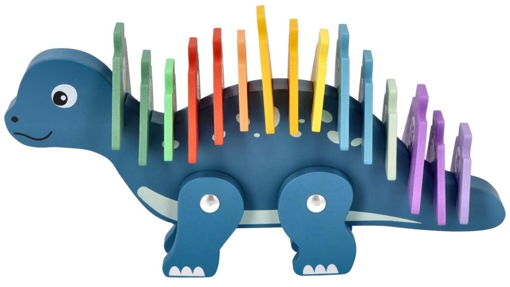 Открийте чара на дървения динозавърски пъзел, който съчетава забавление с учене. Това креативно пъзелче съдържа цветни елементи, които децата могат да поставят върху гърба на динозавъра, като по този начин се учат да разпознават числата и подобряват координацията между ръце и очи. Играчката е изработена от качествено дърво, което гарантира нейната дълготрайност и безопасност при игра.