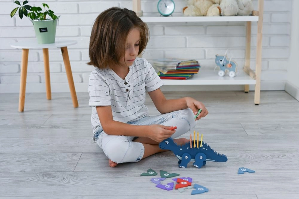 Цветният динозавър пъзел помага на децата да подобрят фините си двигателни умения и координацията.
