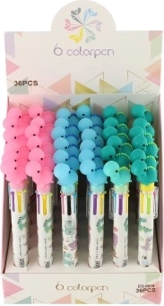 Тази очарователна химикалка е перфектна за всички малки и големи почитатели на писането и рисуването. Шест различни цвята пълнители – черен, син, лилав, жълт, зелен и розов – позволяват на креативността ви да расте без ограничения. С практичната щипка за закрепване към тетрадка химикалката винаги е под ръка и готова за употреба.