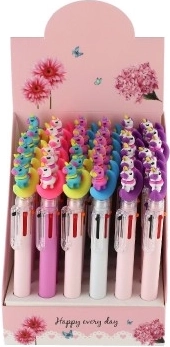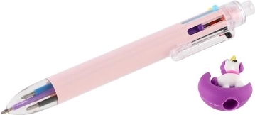 Представяме невероятната шестцветна писалка с любим дизайн на еднорог, която предлага отлични възможности за творческо изразяване. Тази уникална писалка позволява лесен избор между шест цвята мастило: черно, червено, оранжево, жълто, синьо и лилаво.