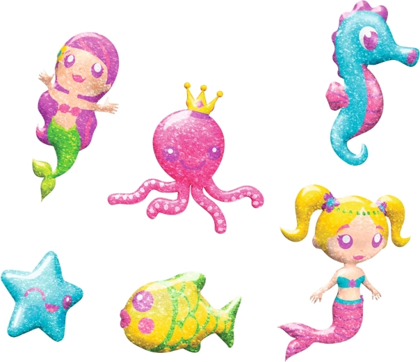 Практичната опаковка може да се използва като повторно използваем съд за вода. Брокатите придават на творбите магически блясък, а шестте форми осигуряват много варианти. Сетът е отличен за развитие на креативността, търпението и цветоусещането.
