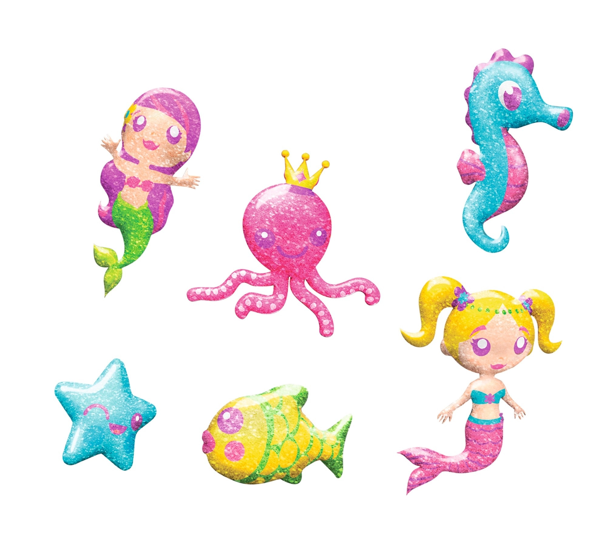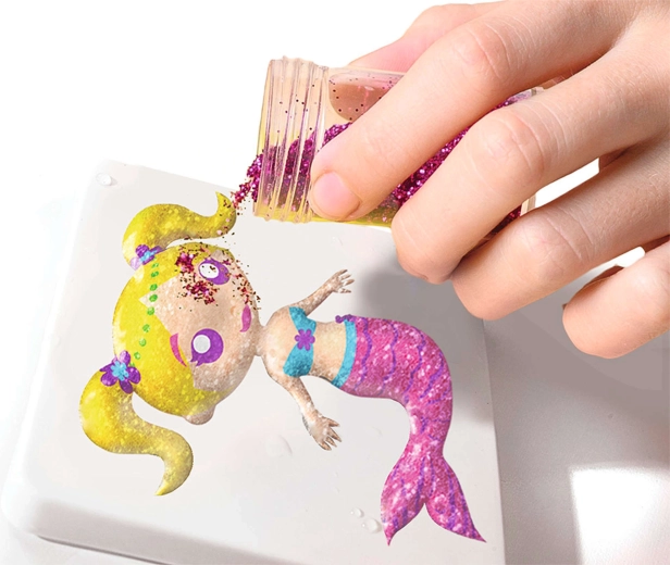 Апликаторните шишенца с тънък накрайник улесняват оцветяването и фините детайли. Брокатите придават на морските фигурки очарователен блясък.