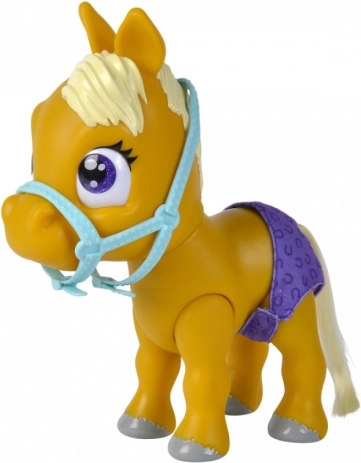 Очарователното интерактивно конче от серията PAMPER PETZ ще зарадва всички малки грижещи се. То може да пие от шишенце, а после да пишка в пелена, която сменя цвета си. Има и вълшебно сърчице, което след изтриване с вода разкрива пола на кончето, както и осиновителен сертификат и практични грижещи аксесоари за много творческа игра.
