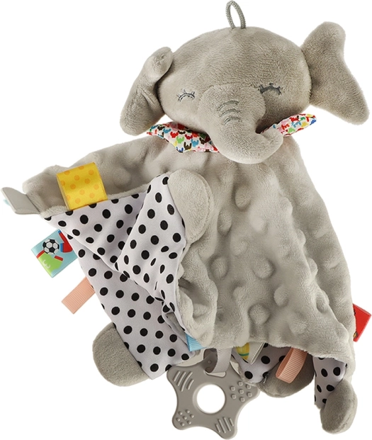 Шумолящият слон е многофункционална сензорна играчка, която отговаря на всички нужди на вашето дете. Осигурява гушкав комфорт, а гризалката помага за облекчаване на болката при поникване на зъбки. Слончето е изработено от много мек материал с интересна текстура, която развива осезанието на детето.