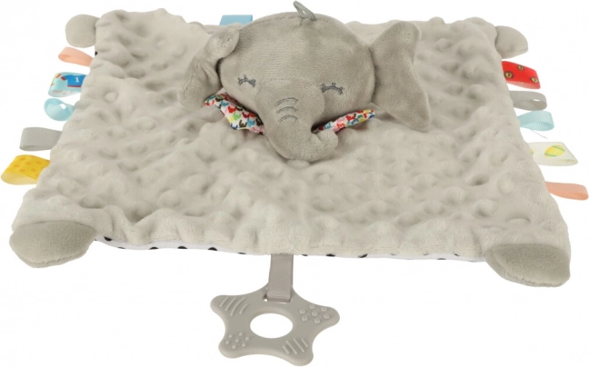 Слончето е изработено от много мек материал с текстура, която стимулира осезанието на детето.
