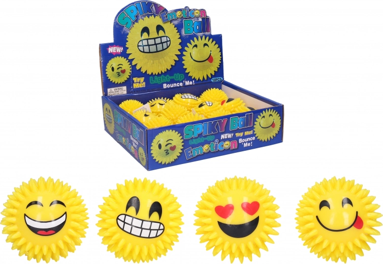 Вземете весела пискаща топка с усмивка, която ще зарадва деца и възрастни. При натискане издава пискащ звук и се включват LED светлинки, така че играта е атрактивна дори по здрач. Повърхността с нежни шипчета стои приятно в ръката и стимулира осезанието.