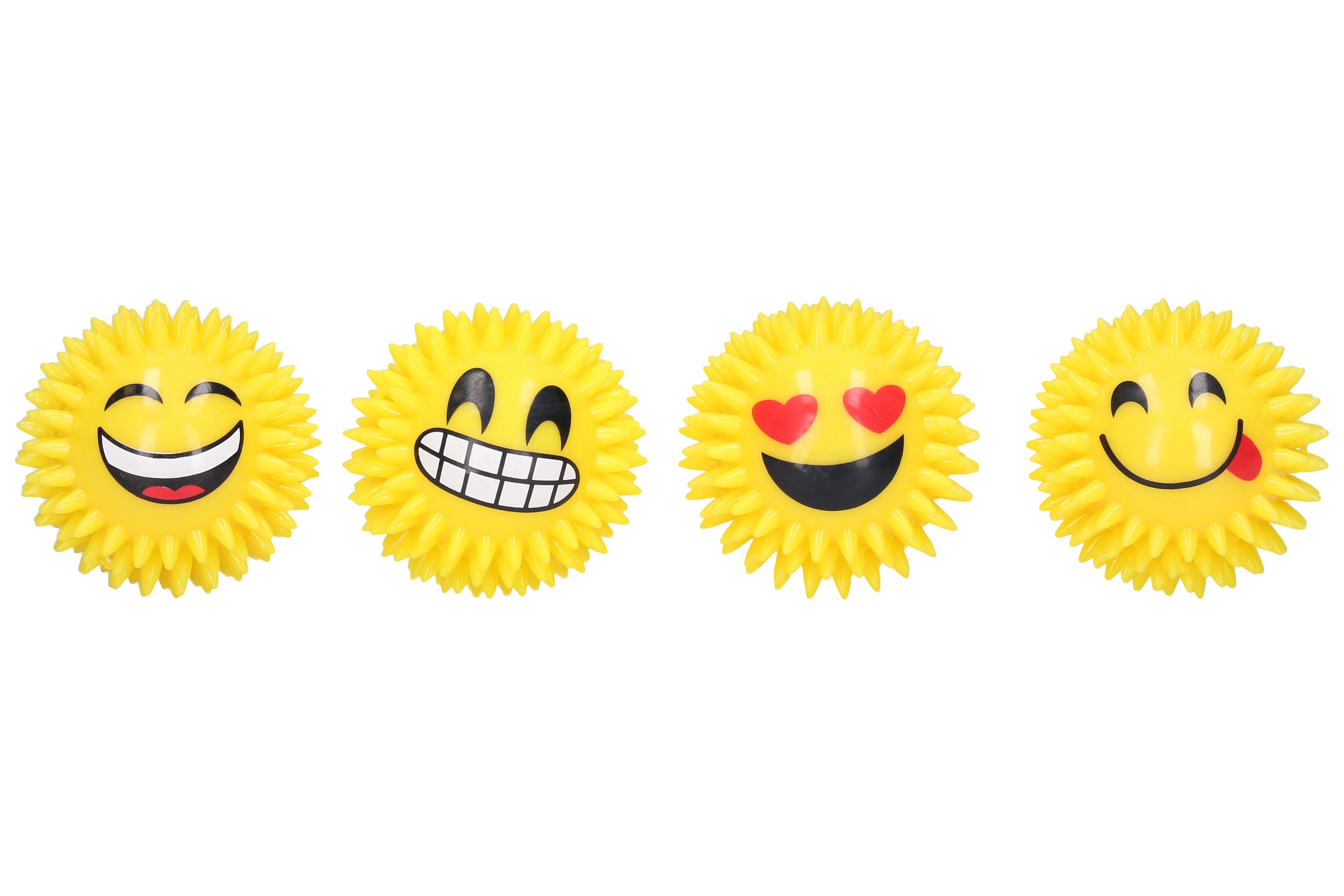 Забавна топка с усмивка с диаметър 7 см, която при натиск издава писък и благодарение на вградените LED предлага светлинни ефекти. Меки шипчета за удобен захват и допълнително забавление. Идеална за деца и като забавна антистрес играчка. Батериите не са сменяеми.
