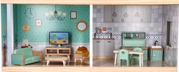 Всеки етаж предлага различен стил стаи – всекидневна, кухня, спалня и балкон. Децата могат лесно да пренареждат мебелите и да създават нови сценарии.