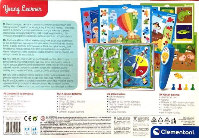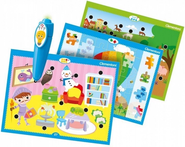 Образователната игра Моето интерактивно перо от Clementoni е създадена да развива уменията и възприятието за заобикалящия свят у деца на възраст 3–6 години. Предлага над 1000 куиза и 120 образователни дейности, които обхващат широка гама теми за предучилищна възраст.