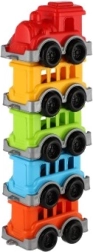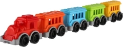 Пъстър пластмасов влак с локомотив и 4 вагончета, който ще зарадва както момчета, така и момичета. Благодарение на компактния размер за детски ръце се управлява лесно, развива фината моторика и въображението и е идеален за у дома и за път.
