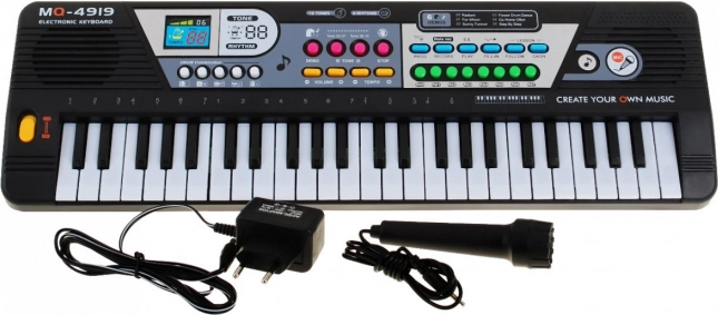 Налични са регулиране на силата на звука и темпото, функции за запис и програмиране, бутон Stop и режим S.E/Play. Включеният микрофон позволява пеене и озвучаване, а вграденият високоговорител осигурява достатъчно силен звук. Благодарение на захранването чрез USB адаптер или с 4× AA батерии можете да свирите навсякъде.
