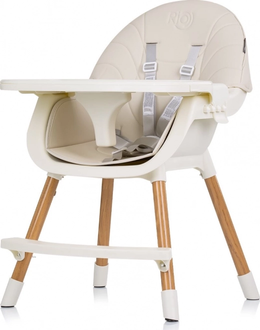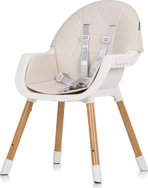 Столчето за хранене Rio 2в1 предлага гъвкави възможности за настройка, като може да служи както като високо, така и като ниско столче, и е предназначено за деца, които седят самостоятелно. Благодарение на удобната седалка с кожена тапицерия столчето се почиства лесно и придава модерен вид на интериора. 5-точковите предпазни колани осигуряват максимална безопасност на вашето дете по време на хранене.