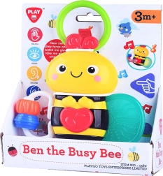 Тази игрива пчеличка е чудесен спътник за бебета и малки деца. Благодарение на компактните размери 14 × 4,5 × 16 cm се държи удобно в малките ръчички и насърчава откриването на светлина, звуци и текстури. Светлинните и звукови ефекти се активират лесно с натискане на сърчицето на коремчето, което мотивира децата към взаимодействие и учене на причинно-следствени връзки.