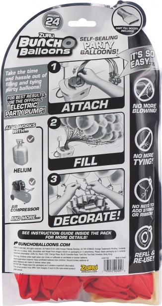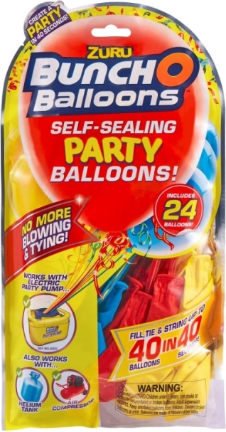 Улеснете подготовката на празника със самозапечатващи се парти балони ZURU Bunch O Balloons. Благодарение на бързото надуване и технологията без връзване на възли ще украсите пространството за миг – просто свържете, напълнете и декорирайте. Съвместими с хелий и въздушен компресор и идеални за рождени дни, сватби и детски партита.