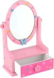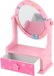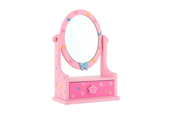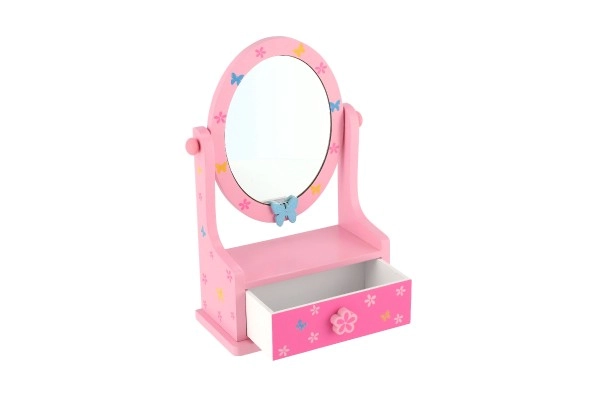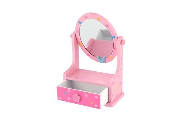 Тази дървена кутия за бижута в пастелни цветове с регулируемо огледало е перфектен избор за малки дами, които искат техните бижута и ценности да са подредени и добре съхранени.