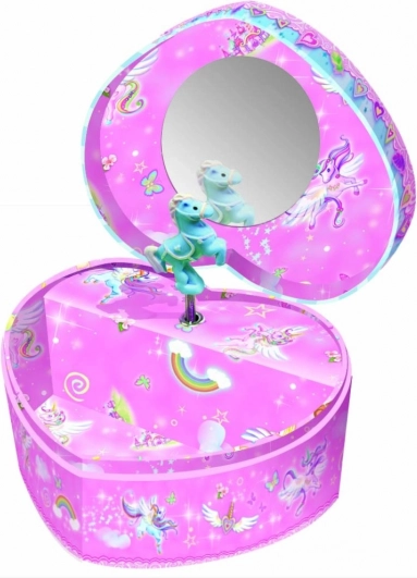 Съхранете своите пръстенчета, гривни и други ценности в кутия за бижута, която радва както окото, така и слуха. След навиване на механизма и отваряне на капака прозвучава приятна мелодия, която подчертава вълшебната атмосфера в детската стая.