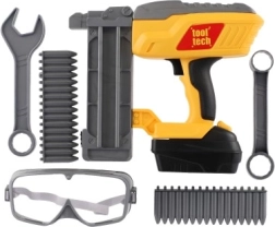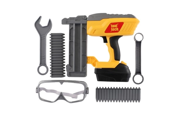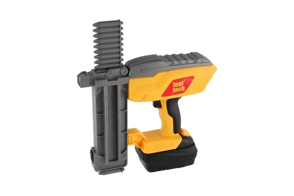 Този детски такер в жълто‑сиво изпълнение е идеален за всички малки строители. Благодарение на светлинните и звукови ефекти изглежда реалистично, но е напълно безопасен за игра у дома и подпомага развитието на фината моторика и въображението.