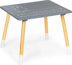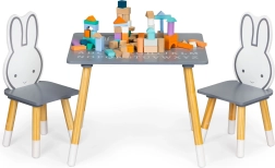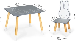 Детската маса и столове Ecotoys са отличен избор за всички малки артисти и откриватели. Масата с мотив на зайче предлага не само място за рисуване и игра, но и за учене на азбуката. Благодарение на простия скандинавски дизайн се вписва чудесно във всяка детска стая или игрална.