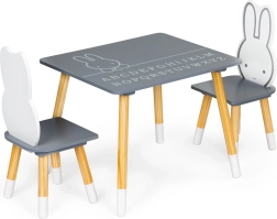 Съдържа два стабилни стола с удобни седалки от MDF. Благодарение на правилно подбраните размери на столовете и масата е осигурен максимален комфорт за детето.