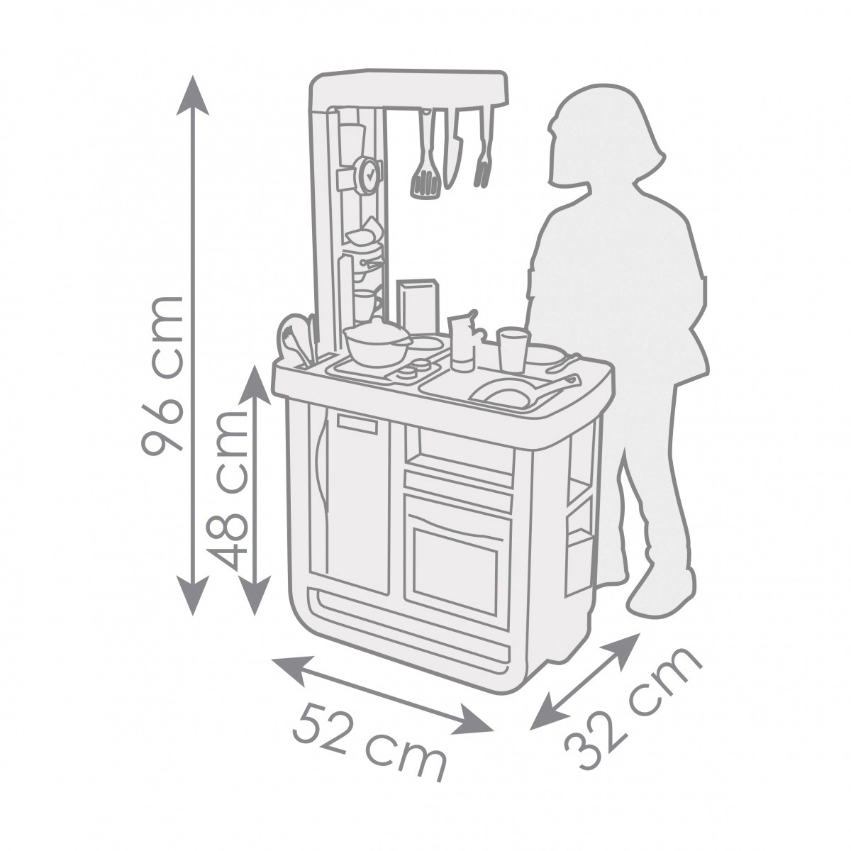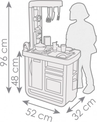 Предлага се в меки пастелни нюанси, които хармонично се съчетават с всеки интериор. Родителите и децата ще оценят богатото оборудване на кухничката, което включва котлон с 2 горелки, фурна с отварящи се вратички, хладилник, мивка с кран и кафемашина. Електронният звуков модул подчертава реализма на играта със звуци на готвене, което носи още по-голямо удоволствие на децата.