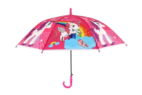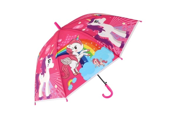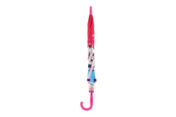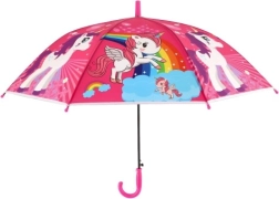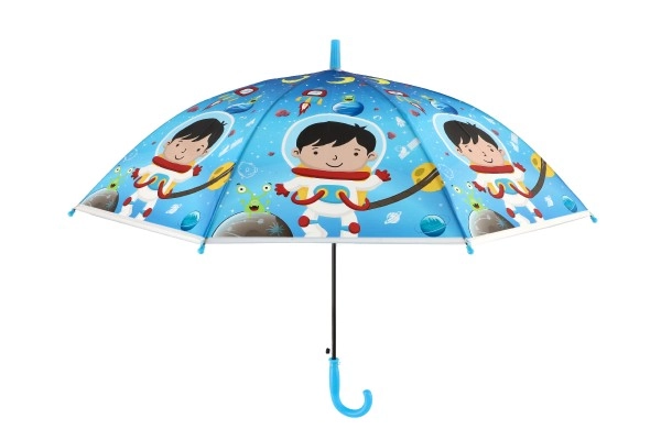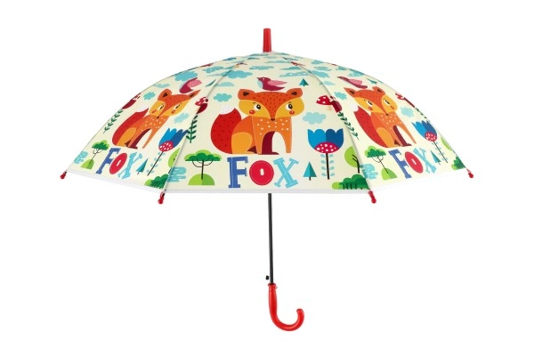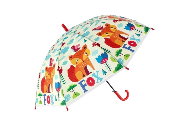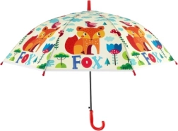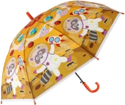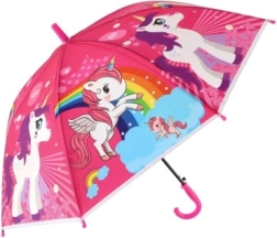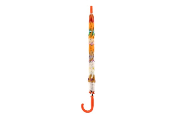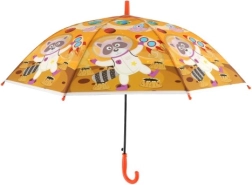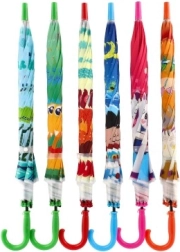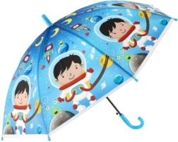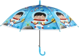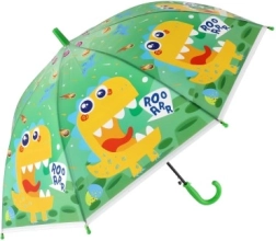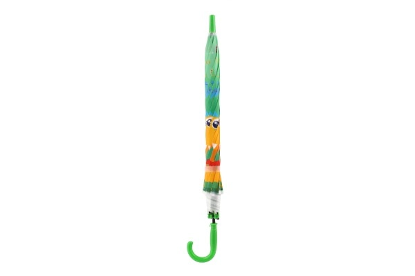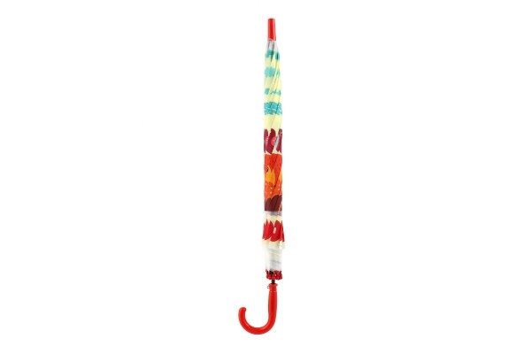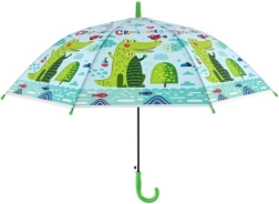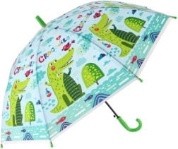 Този весел детски чадър превръща всяка превалявка в забавление. Благодарение на автоматичния механизъм се отваря лесно дори и за по-малки деца, а леката конструкция от метал и пластмаса осигурява комфортно носене през целия ден.