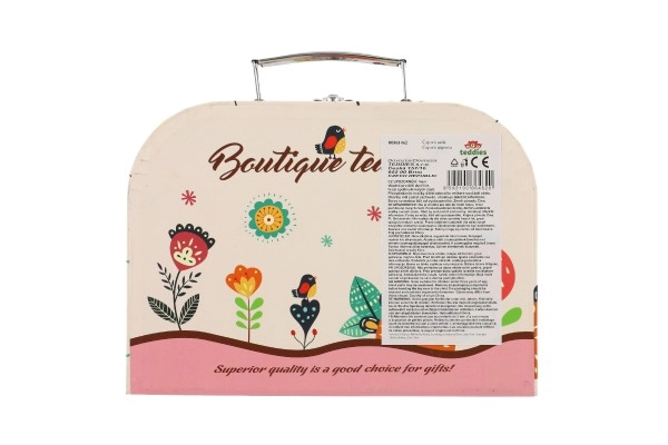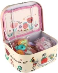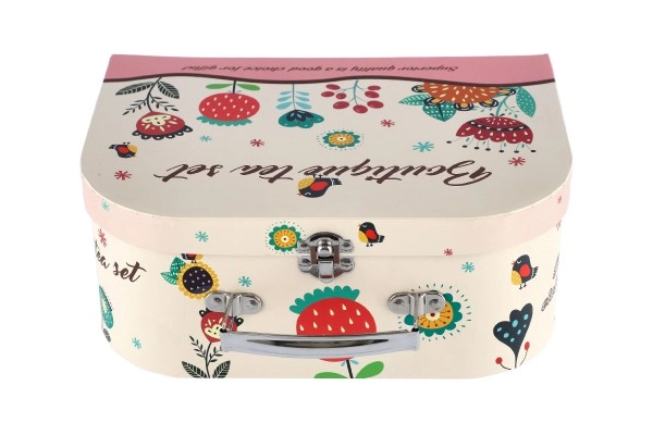 Всяко малко момиче вече може да сервира чай и кафе на своите приятелки и плюшени играчки с този прелестен чаен сервиз. Комплектът е подреден в практично куфарче, което го прави идеален за игра по време на пътуване.