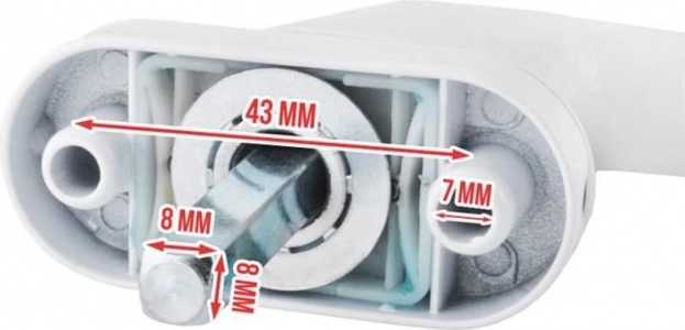 Дръжката е изработена от здравa комбинация от метал и пластмаса, има изчистен бял вид и удобно управление. Монтажът е бърз и лесен – в комплекта ще намерите всичко необходимо, включително винтове и 2 ключа.