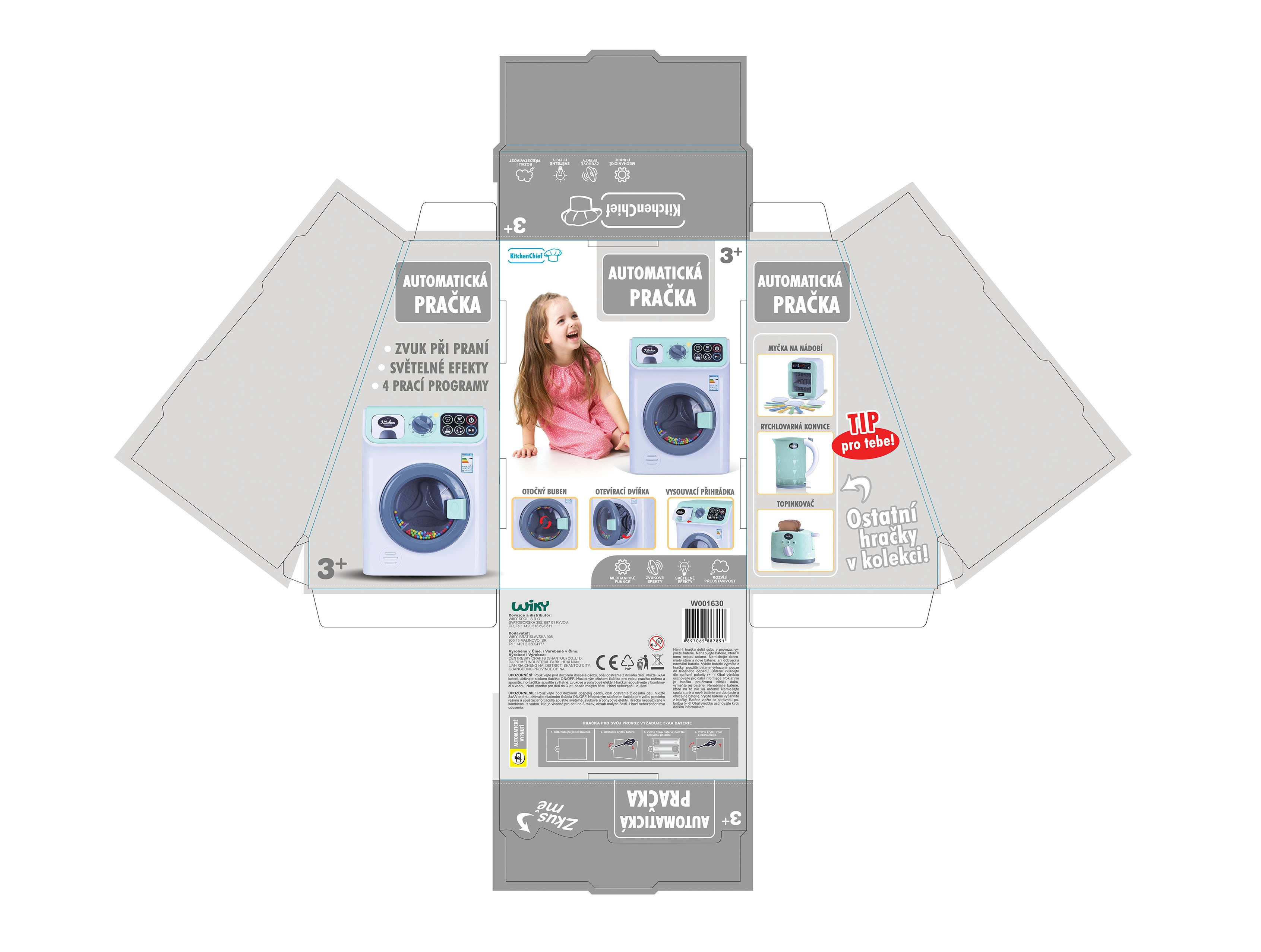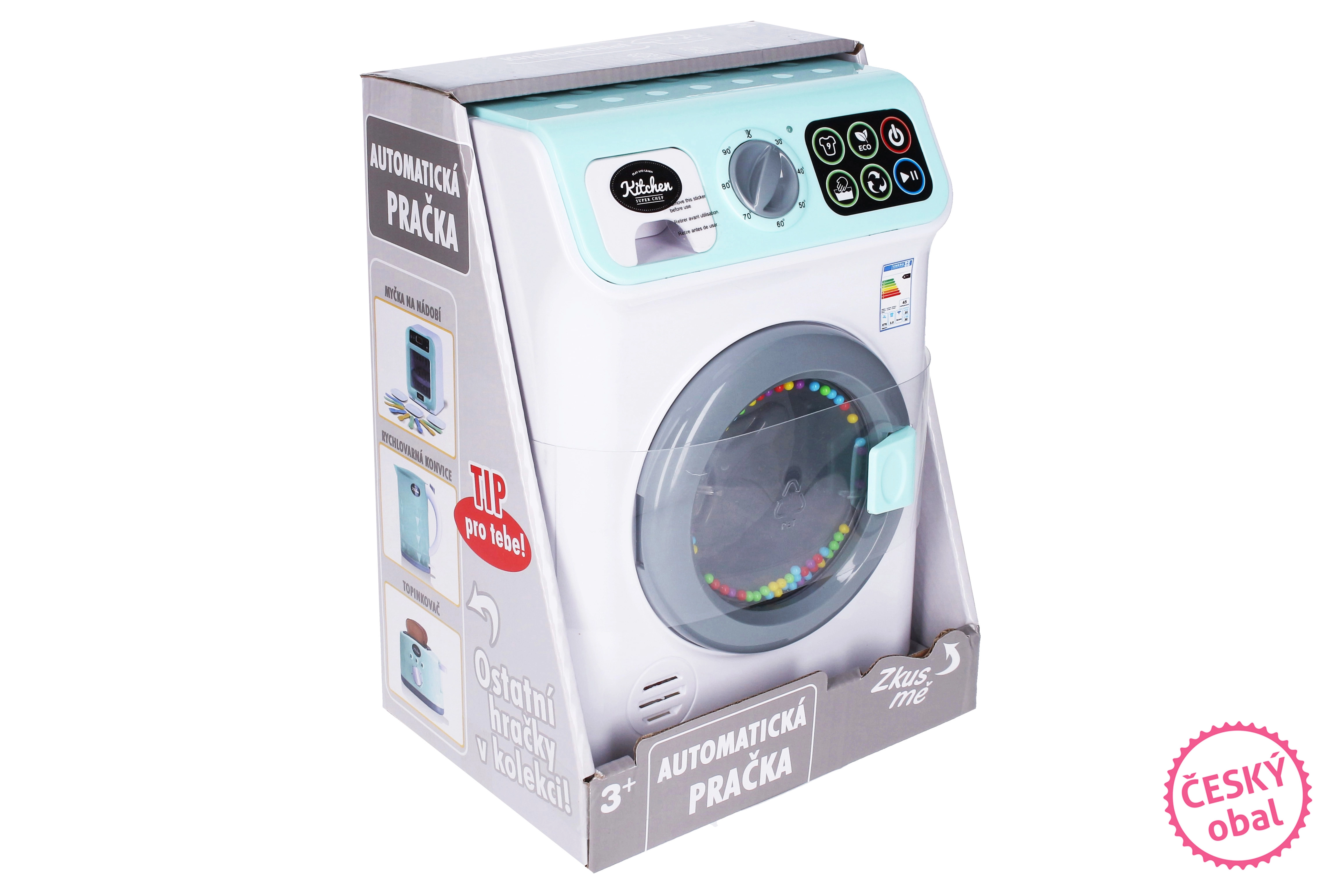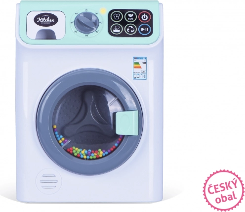 Тази детска пералня носи на децата автентично изживяване – достатъчно е да напълните барабана, да изберете програма и температура, да добавите перилен препарат и да включите. Барабанът наистина се върти и всичко е придружено от реалистични светлинни и звукови ефекти, което прави играта още по-забавна.