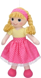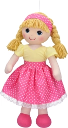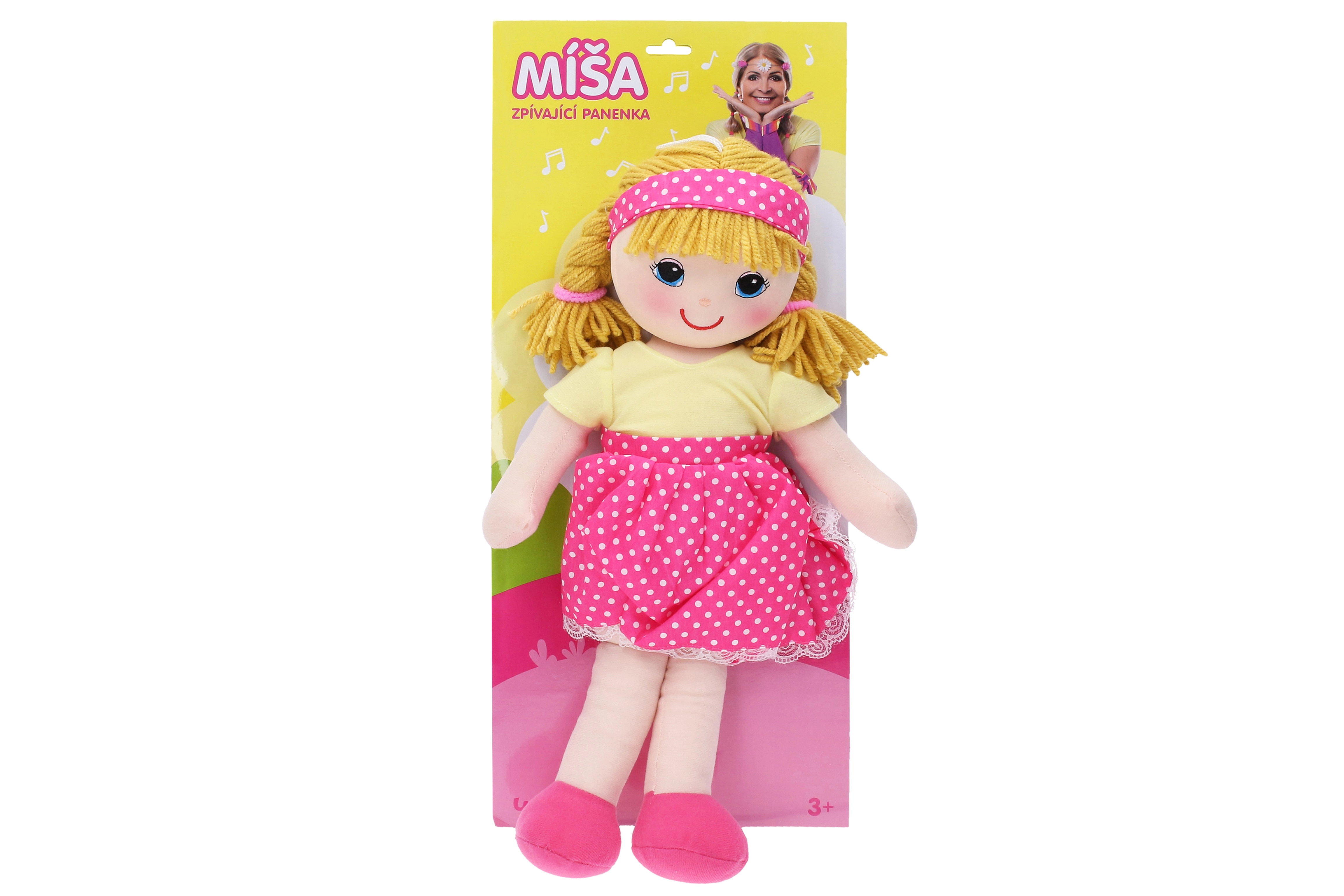 Тази прекрасно изработена платнена кукла, вдъхновена от популярната изпълнителка на детски песни Миша Ружичкова, е идеален избор за всички малки момичета, които обичат музиката и играта с кукли. Куклата е оборудвана с прост механизъм, който позволява възпроизвеждане на седем известни песнички: