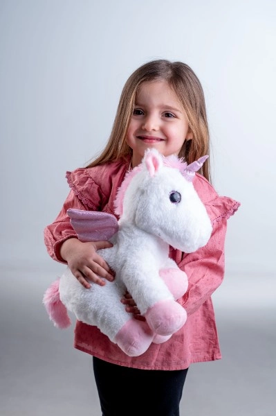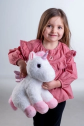 Това плюшено еднорогче е перфектно като детски спътник, който оживява всяка игра и носи успокояващ комфорт както през деня, така и през нощта.