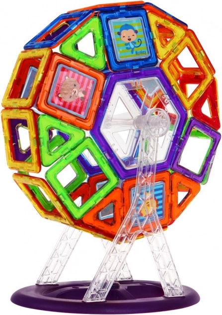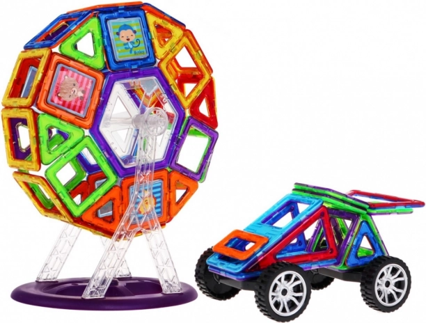 Открийте не само забавление, но и учене с този конструктор от 112 части. Силните магнити позволяват лесно свързване и създаване на 2D и 3D модели – от количка до виенско колело. Цветните полупрозрачни елементи развиват креативността, логическото мислене и пространственото въображение на децата, а устойчивите материали осигуряват безопасна игра.