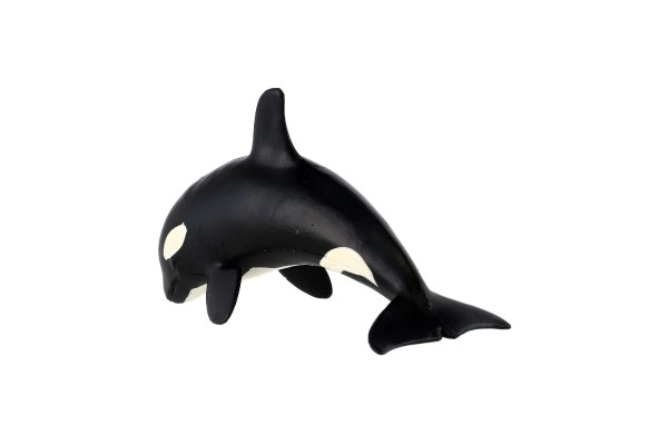 Тази пластмасова фигурка на косатка, известна като хищен властелин на океаните, е идеална за образователни цели или като играчка за деца. С реалистичен дизайн и характерните черно-бели окраски тя внася частица океан във всяка игра.