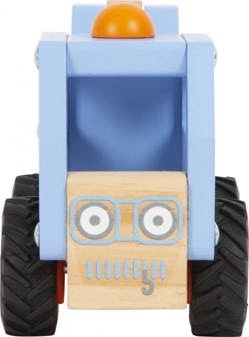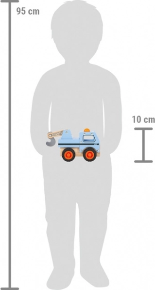 Това здраво дървено пътно-ремарке е идеално за малки почитатели на автомобилите. Благодарение на функционалния кран с кука децата лесно симулират оттегляне на превозни средства, развиват въображението и се запознават с игрите на професии. Кабината предлага място за фигурка (не е включена в комплекта), а гумираните колела осигуряват тихо и плавно движение.