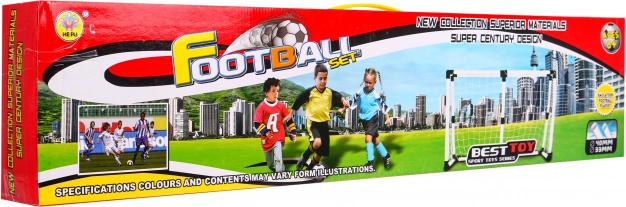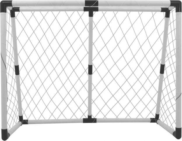 - Футболна врата с мрежа, футболна топка, помпа, 6 колчета за земя