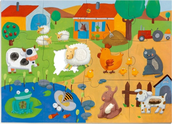 Открийте забавните тактилни пъзели на тема ферма от Djeco, които подпомагат мултисензорното учене и развитието на детето. Големите и здрави части с текстури на животинска козина развиват фината моторика, тактилното възприятие и едновременно учат децата да разпознават домашните животни. Идеален подарък за деца от 3 години.