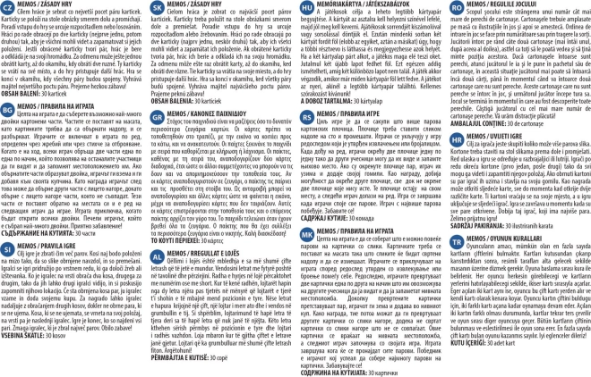 Играта е предназначена за деца, но ще забавлява и възрастни. Съдържа 30 карти, което прави 15 двойки изображения с високо качество на печат. Идеална е за цялото семейство и за различни поводи, когато искате да прекарате време заедно и да тренирате ума.