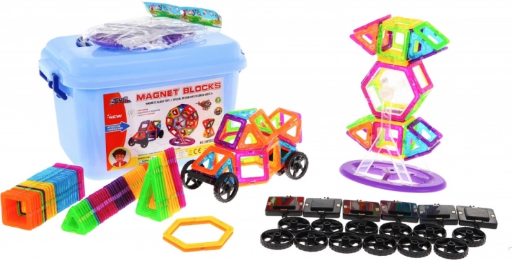 Открийте безкрайните възможности с Giga комплекта магнитни конструктори, идеален за деца от 3-годишна възраст. Лесното свързване на частите позволява бързо създаване на впечатляващи конструкции. Комплектът съдържа илюстрирано ръководство с примери за модели за сглобяване. Всичко е практично събрано в пластмасова кутия с дръжка за лесно пренасяне.