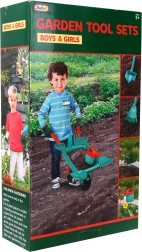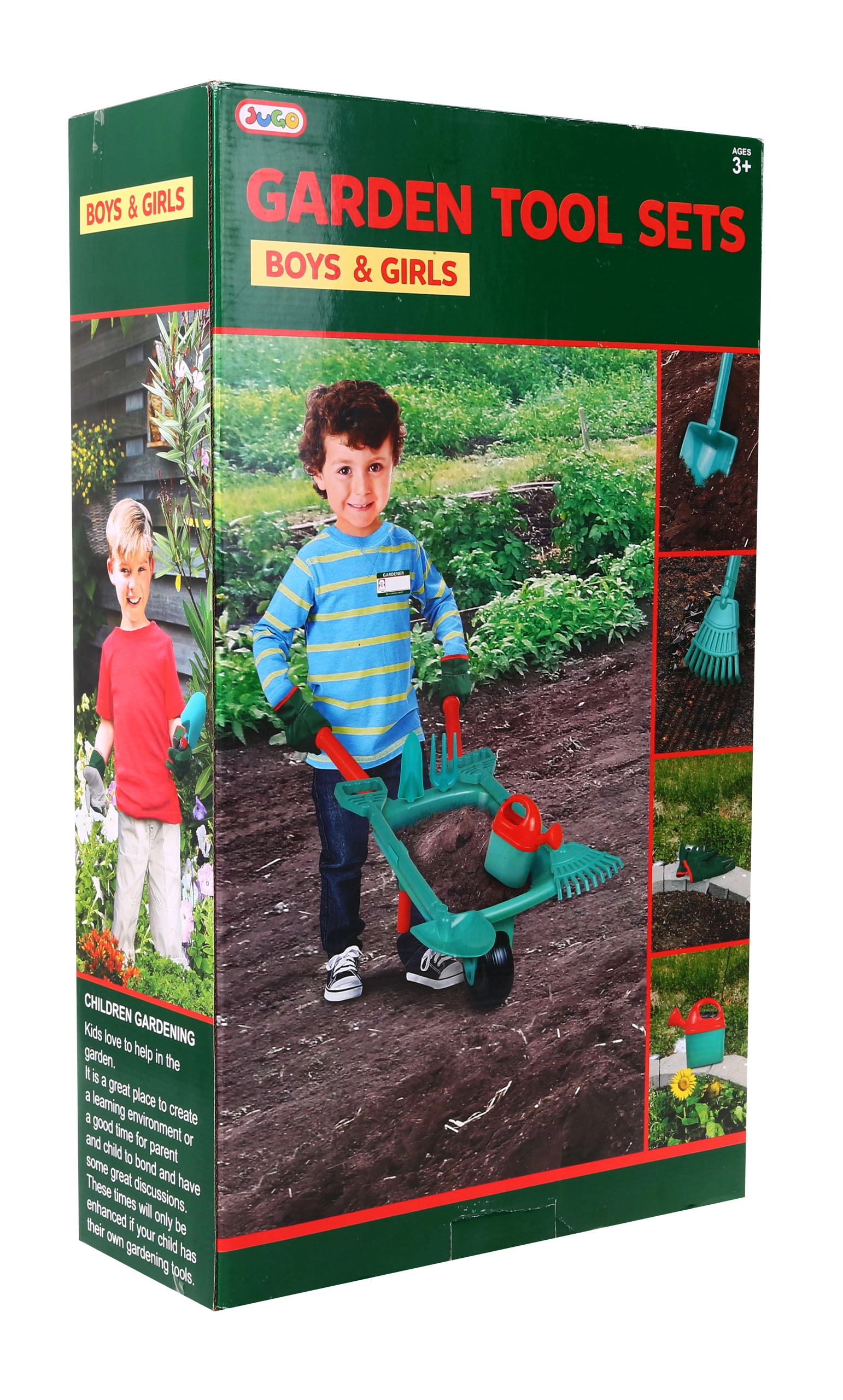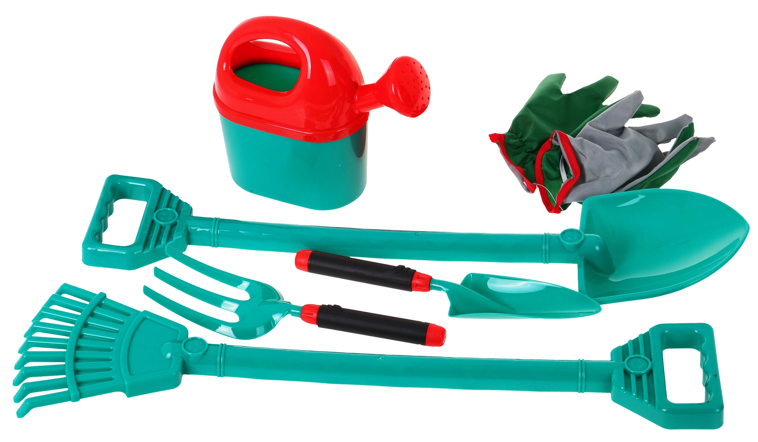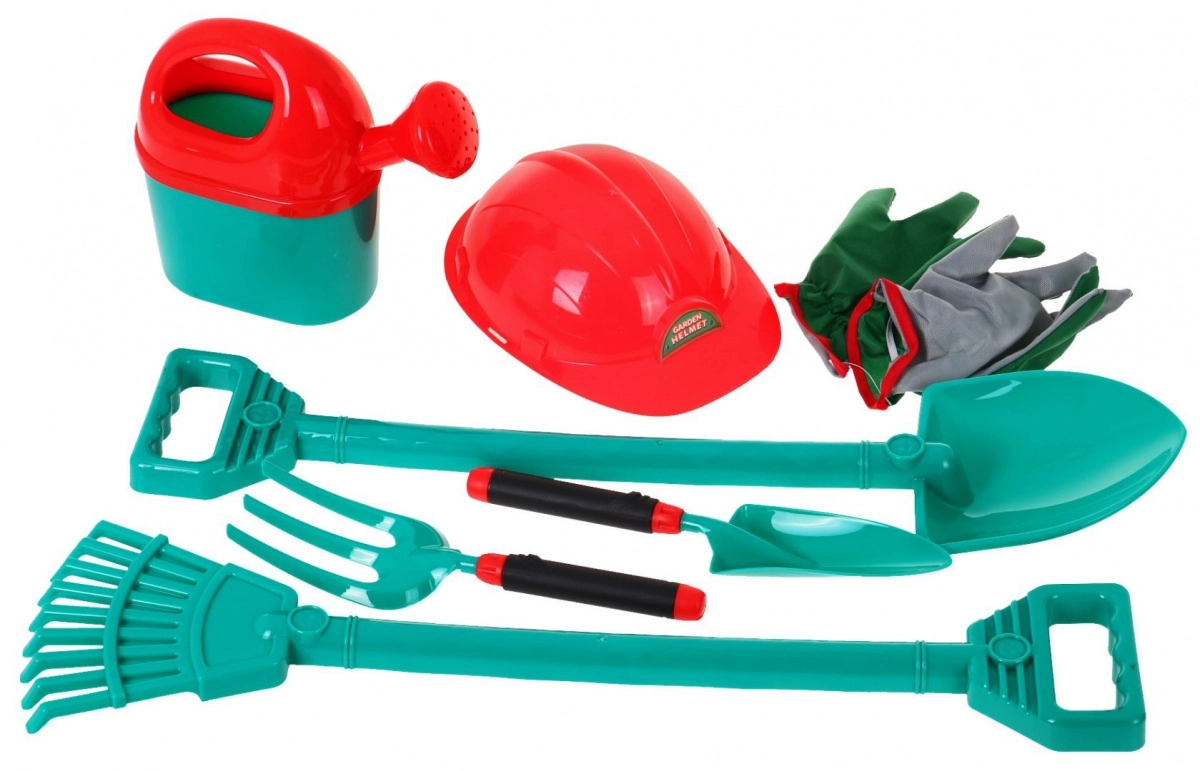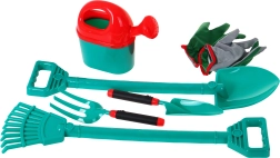 Лопата, гребло, вила, малка лопатка и лейка са съобразени с детските ръце. Децата ще усвоят основите на градинарството и ще развият координация и отговорност.