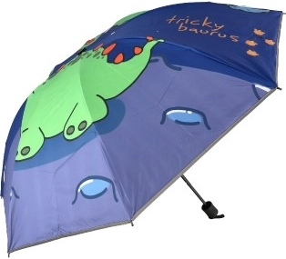 Този детски чадър с весел динозавърски мотив е създаден да очарова всяко дете. С диаметър 90 см осигурява достатъчна защита от дъжда, а благодарение на рефлексивното кантоване винаги ще бъдете добре видими и при сумрачно време. В сгънато състояние е само 25 см, което означава, че лесно се побира в училищна чанта или раничка. Идеален спътник за училище, детска градина или разходки!